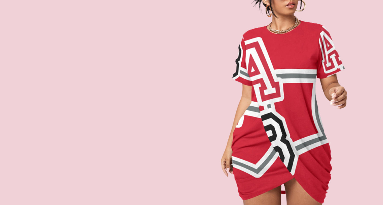 ABJ(TeeTee) Red/White All-Over Print Women’s Stacked Hem Dress With Short Sleeve(Plus Size)