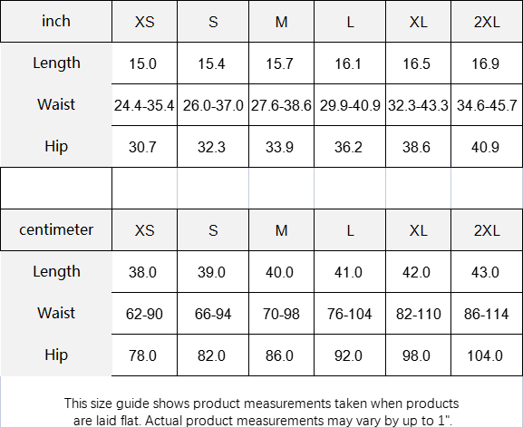 This size guide shows product measurements taken when products are laid flat. Actual product measurements may vary by up to 1".