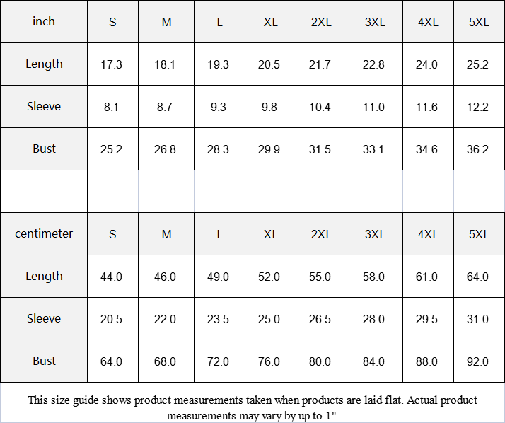 | centimeter | S | M | L | XL | 2XL | 3XL | 4XL | 5XL |