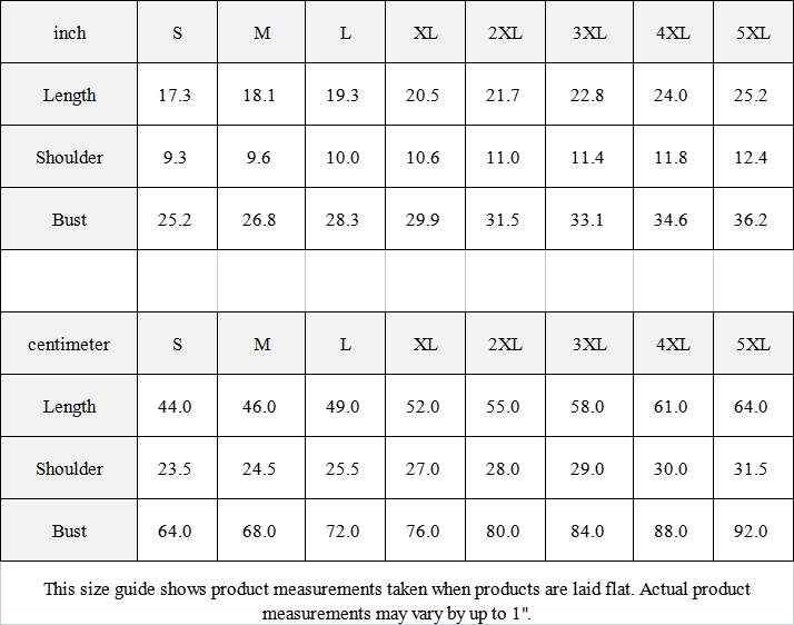 This size guide shows product measurements taken when products are laid flat. Actual product measurements may vary by up to 1".