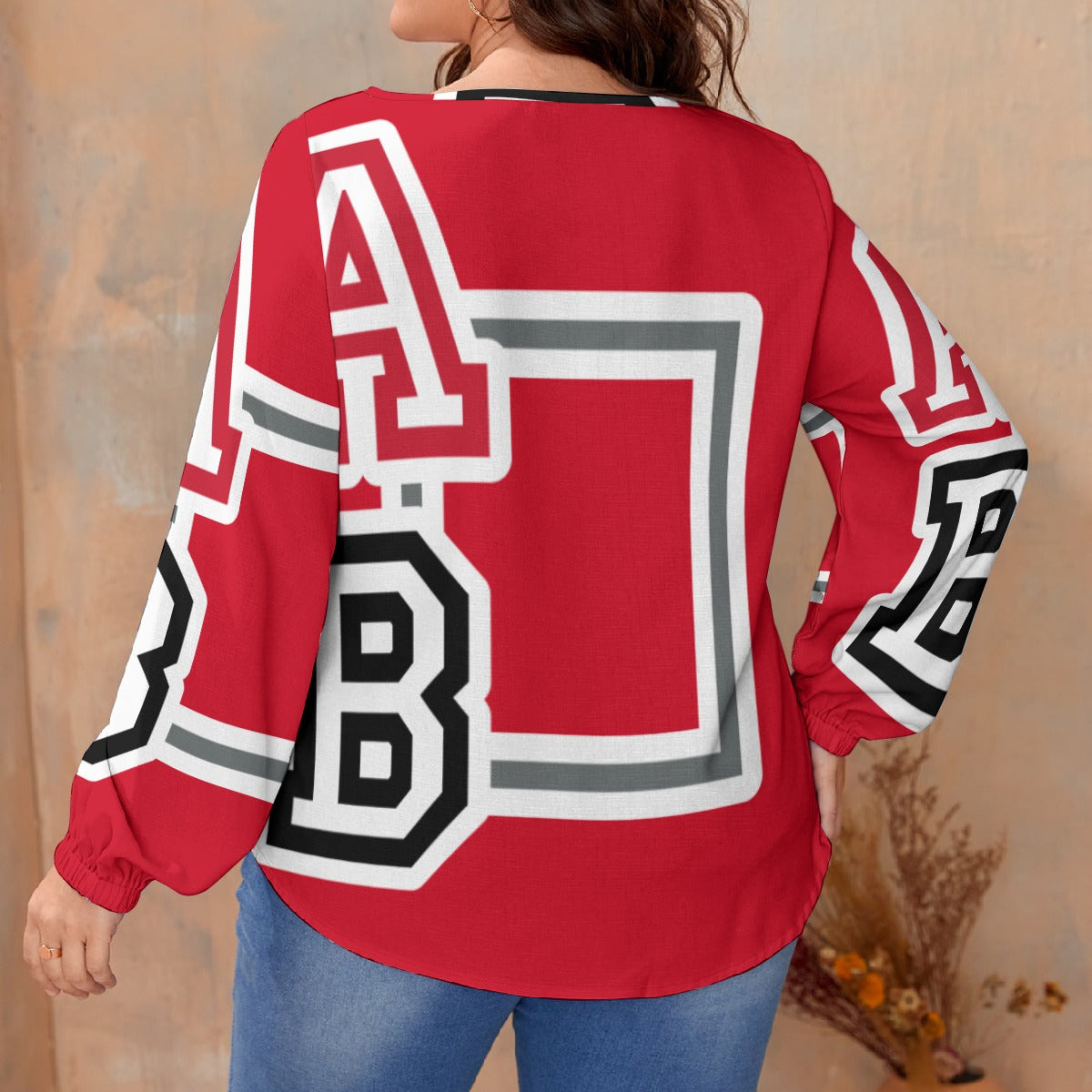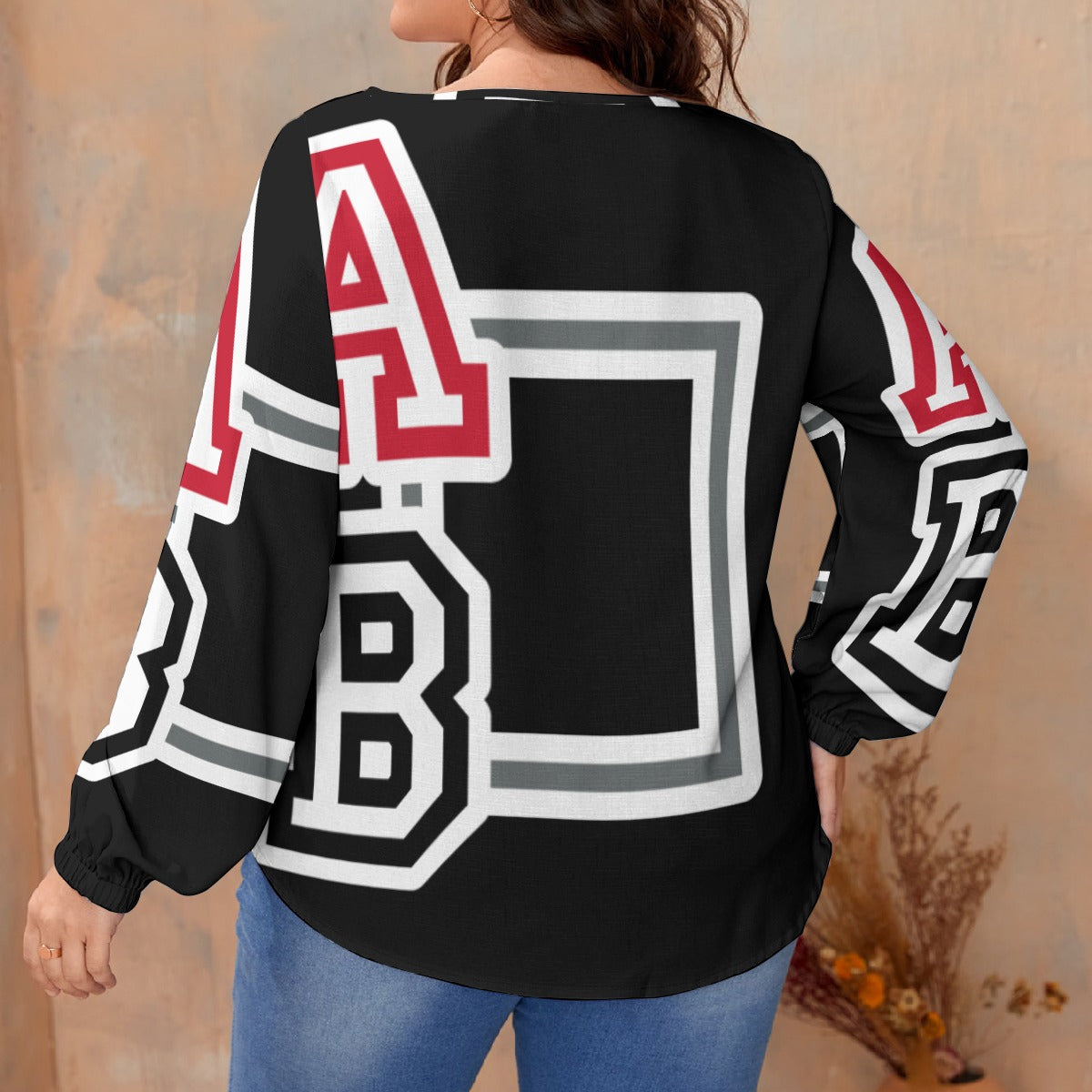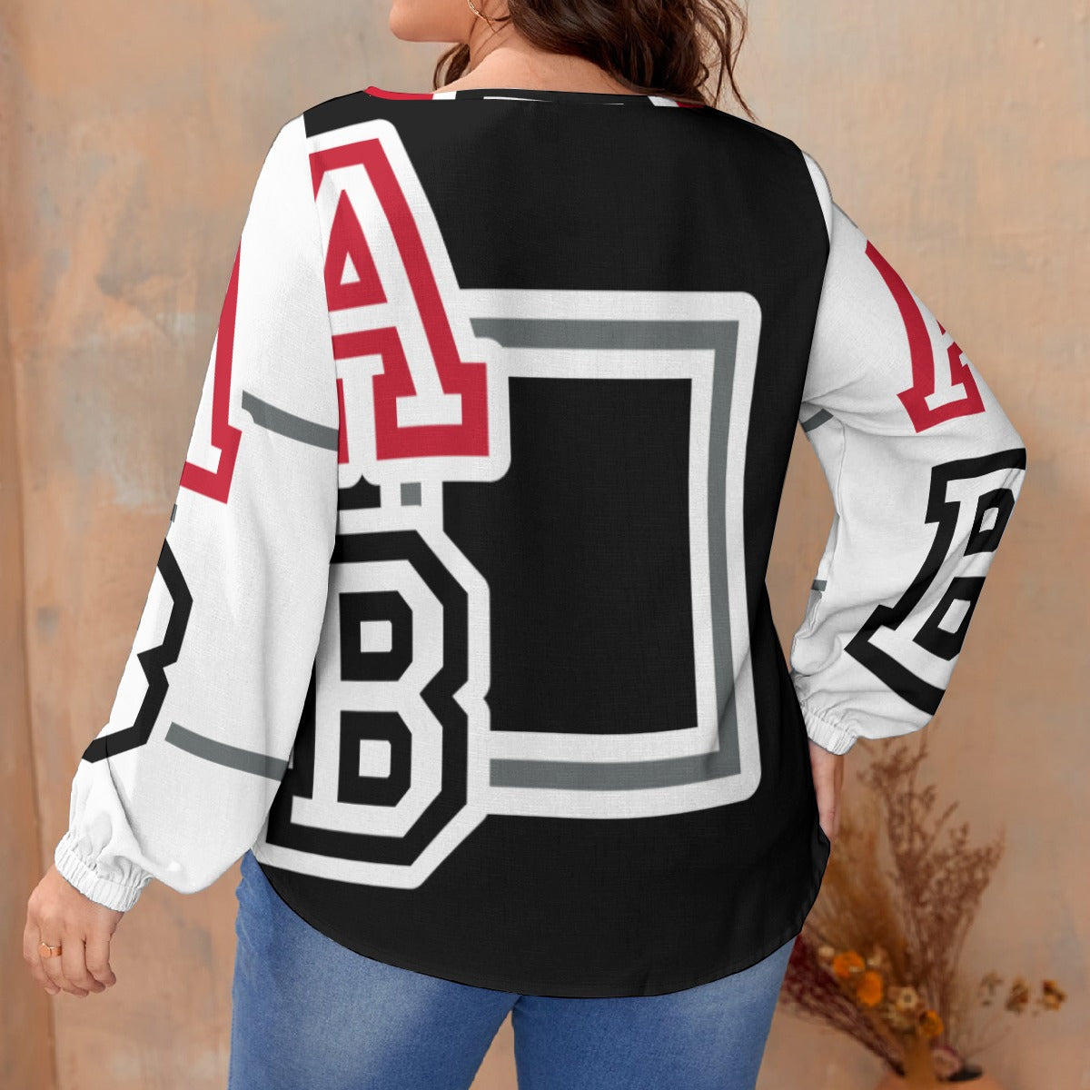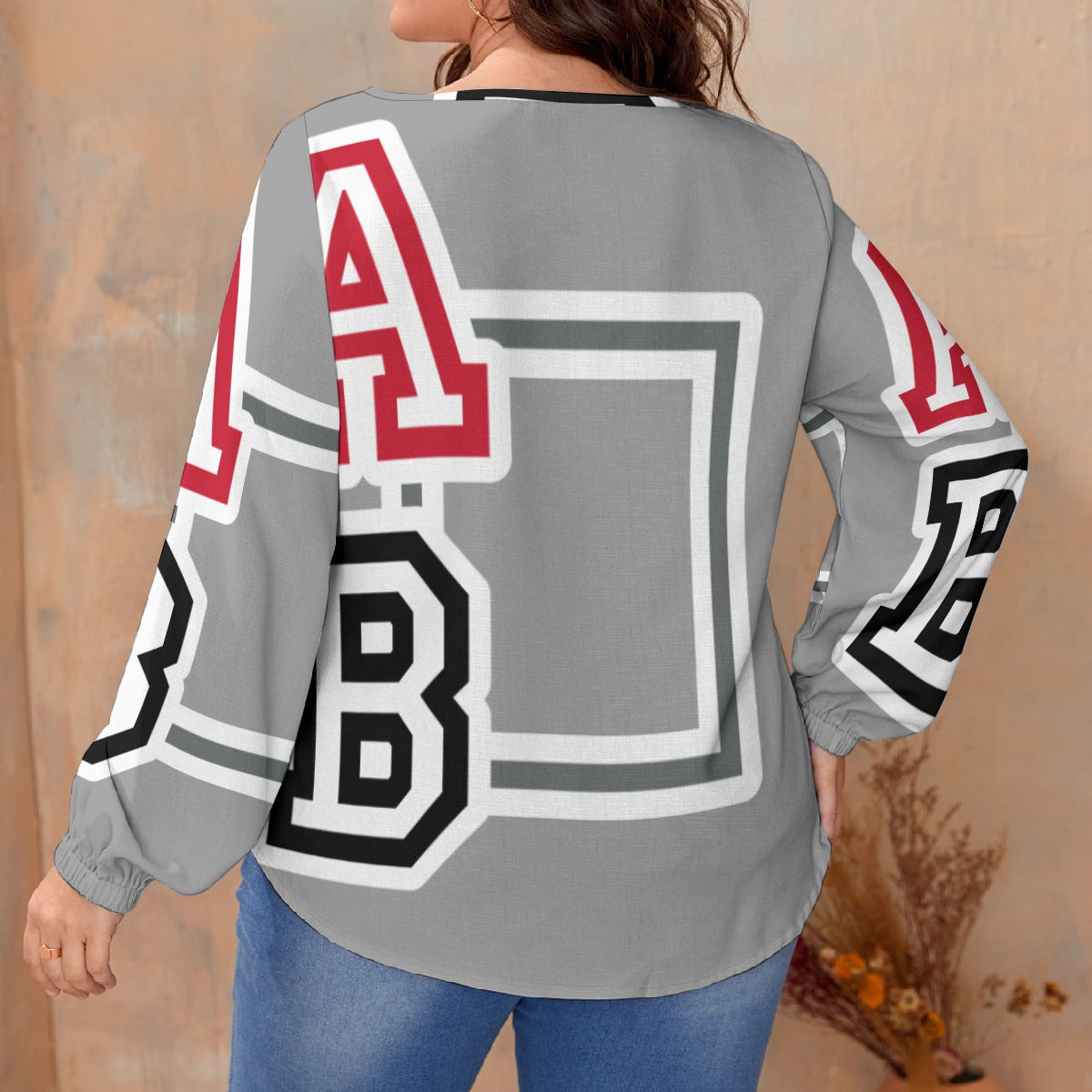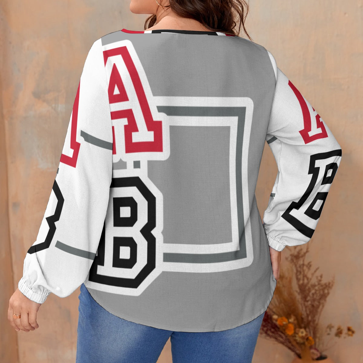 ABJ All-Over Print Women's Round Neck Blouse With Waist Knot (Plus Size)